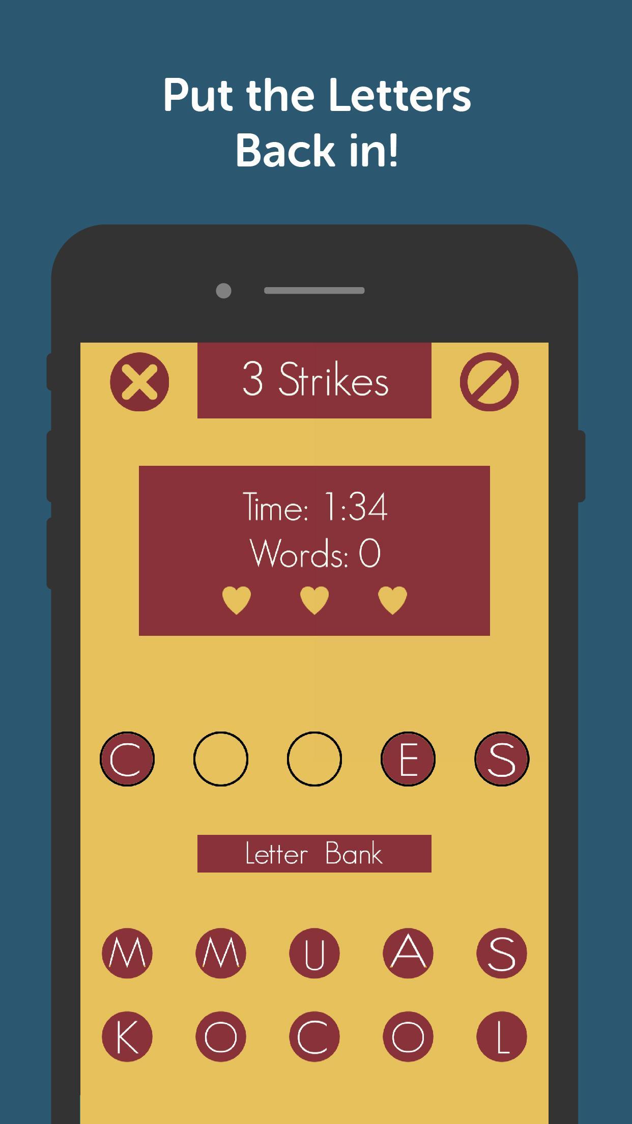 • Ketuk huruf di bank kata Anda untuk mengisinya.