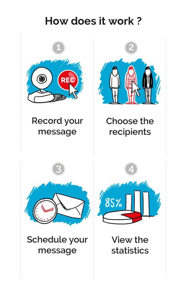 - ビデオメッセージはすべてのデバイス(PC / Mac /スマートフォン /タブレット...)で利用できます。