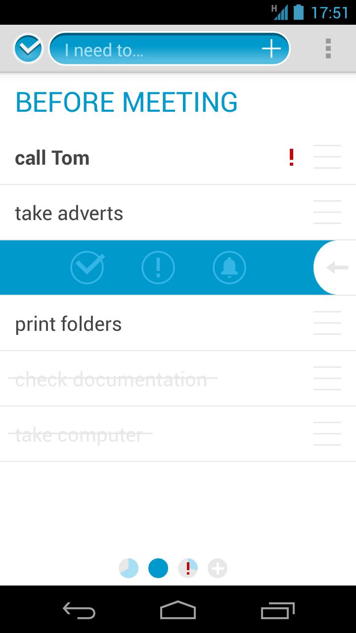タスクグループを作成し、必要な数のタスクを追加することで、アジェンダの計画を開始できます。グループを設定したり、新しいグループを作成したりすることができます。いくつかのタスクが作成されたら、それらを緊急または完了したとマークすることができます。ソート機能により、最も重要な仕事に注意することができます。さらに、重要なものを忘れたくない場合は、そのような今後のタスクを参照するリマインダーを使用してください。可視性を高めるために、画面の下部にアイコンがあり、特定のグループのタスクの進行を監視するか、重要なことがあるかどうかを確認します。