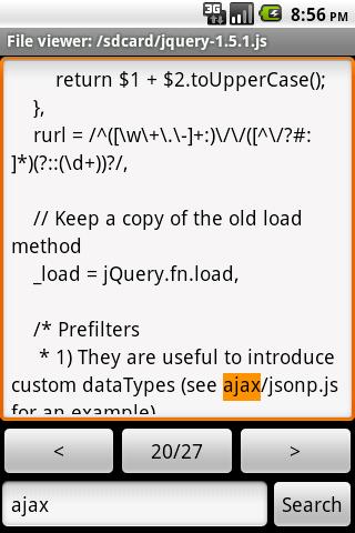 ファイルページ間で移動してテキストを検索できます。