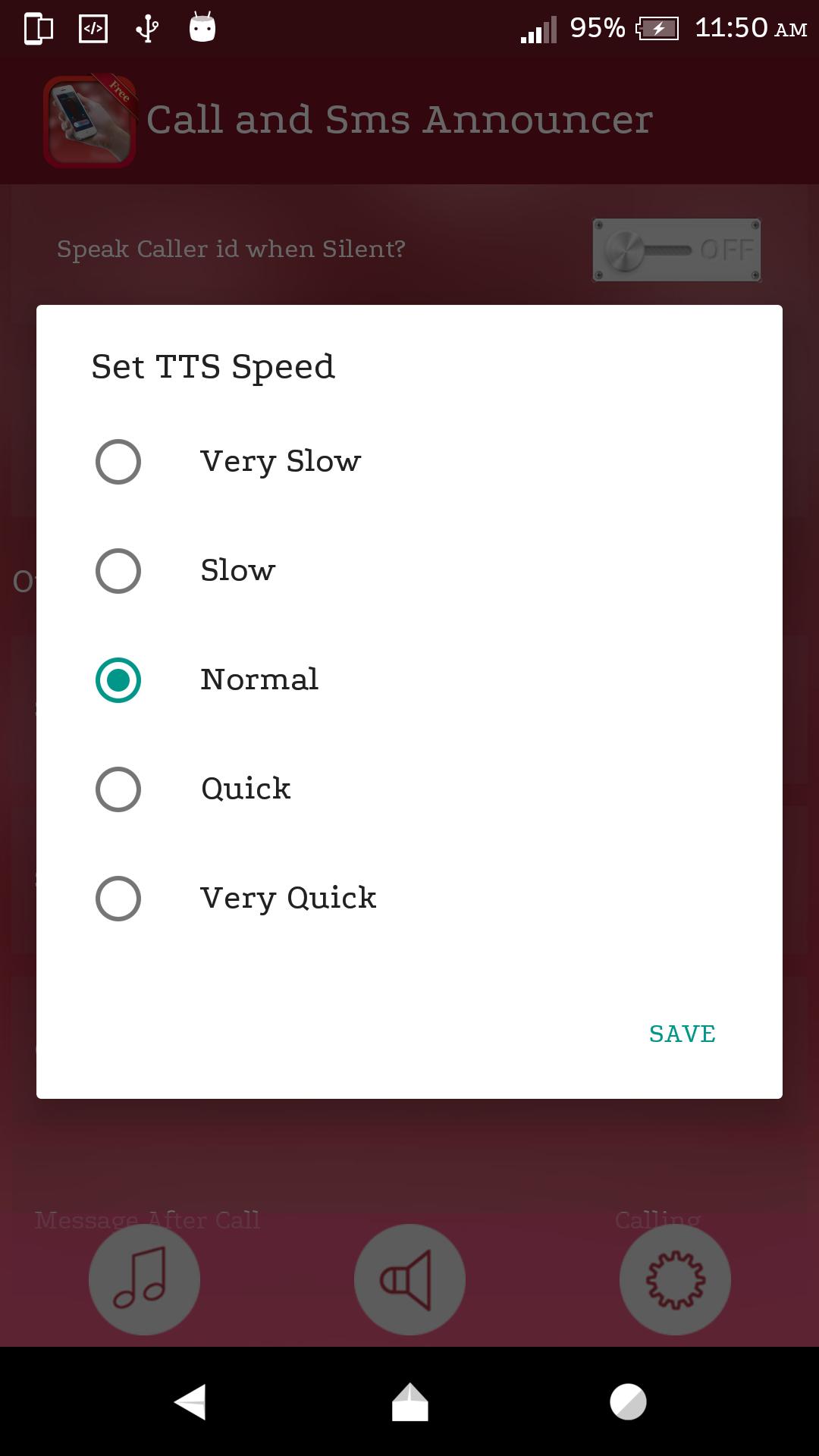 Caller Name and SMS Announcer 、誰かがあなたに電話をかけたり、メッセージを送ったりしている間、すべてを話します。スマートフォンに目を向けることなく識別します。発信者名アナウンサーは、組み込みのAndroidテキストからスピーチエンジンを使用して、着信の発信者名またはSMS送信者名とSMSの内容を話します。スマートフォンにテキストからスピーチへのライブラリがない場合、発信者名アナウンサーは機能しませんが、これはGoogle Playストアから簡単にダウンロードできる問題ではありません。