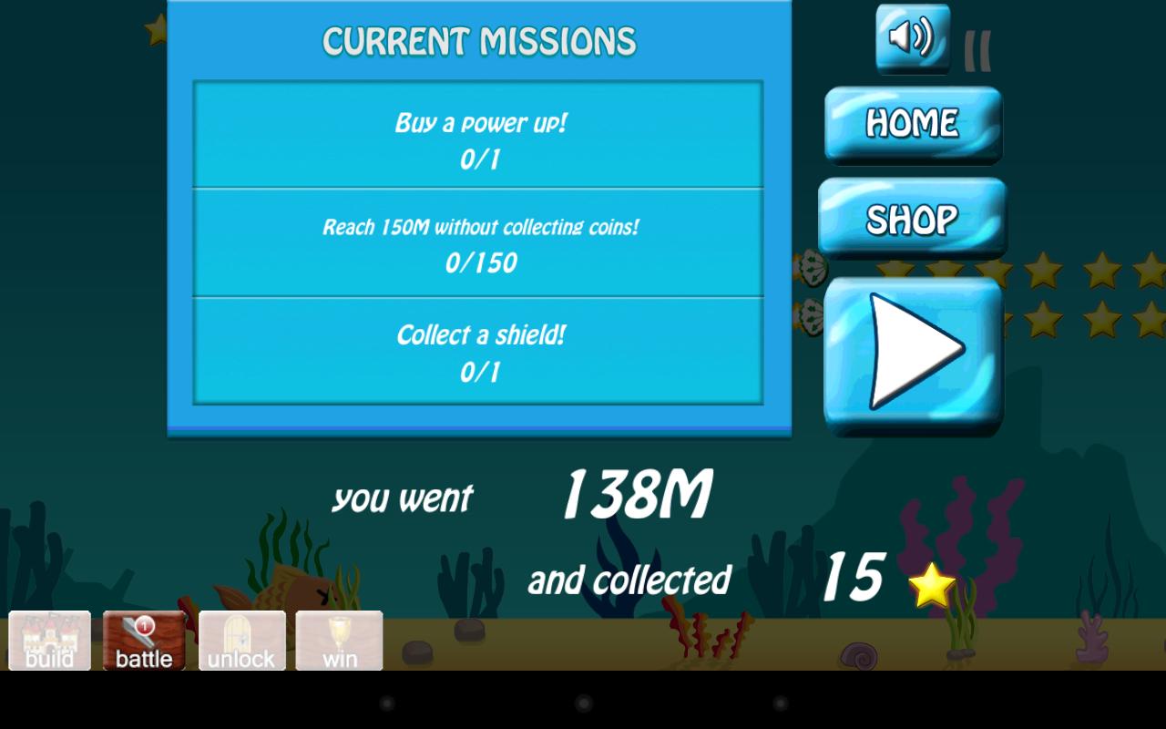 水中の世界には、あなたの冒険を終わらせることができる多くの障害が含まれています。水中の動物や潜水艦の爆弾を避けてください。