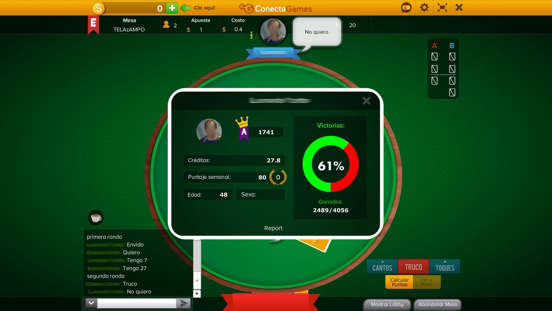 Truco Argentino、マルチプレイヤーゲーム1対1、2対2 O 3 VS 3プレーヤー。