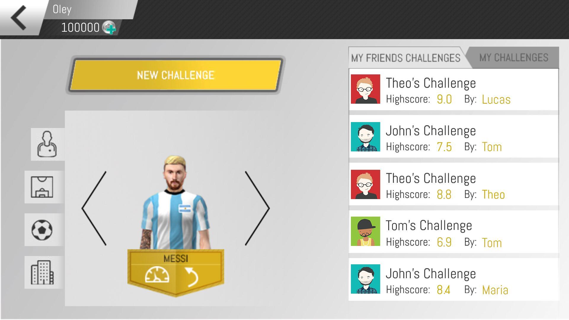 ○チャレンジモード:カスタムフリーキック(カスタムウォール、シューティングスポット、ターゲット)を作成し、誰かがスコアを打ち負かすことができるかどうかを確認するように友達に挑戦します。友達の挑戦もプレイできます。