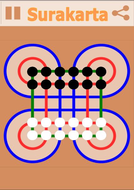 Surakartaは、2人のプレーヤー向けのインドネシアの戦略ボードゲームであり、ジャワ中部のSurakarta市にちなんで名付けられました。 Javaでは、このゲームは「Bas -Basan Sepur」と呼ばれます。