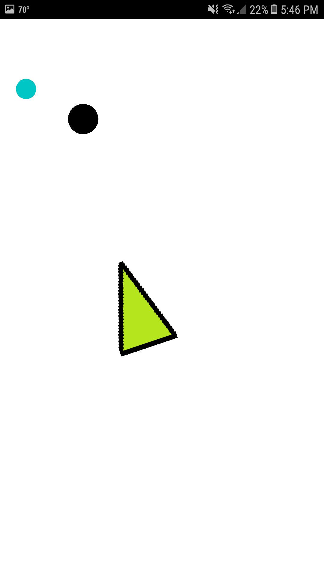 あなたは三角形によって追求される黒い円です、あなたはポイントを追加するために青い円に触れる必要があります。 100を超えることはできません