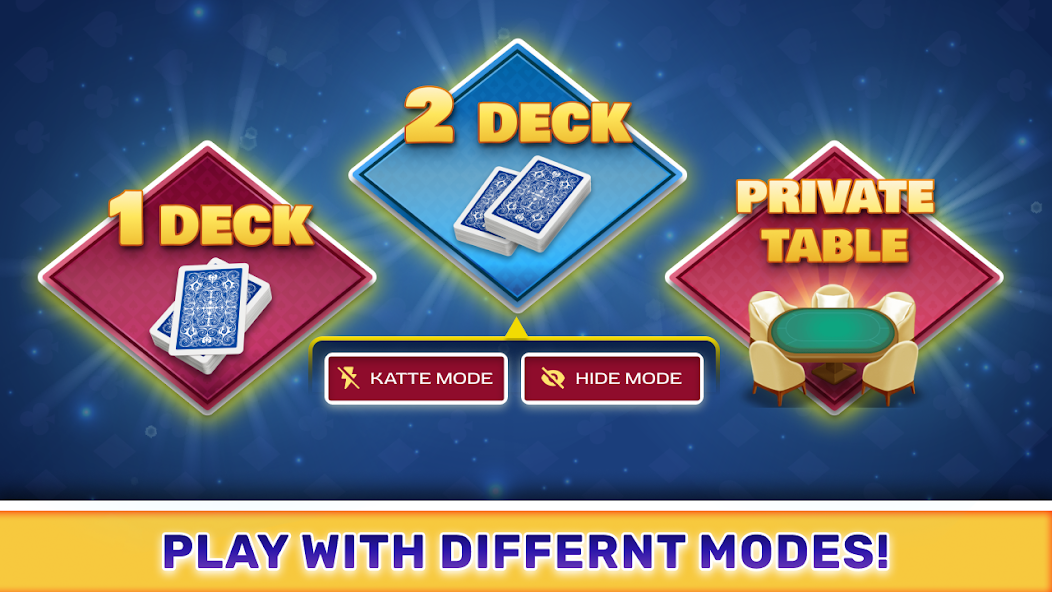 - 「Katte Mode」をプレイしている場合、すべてのプレイヤーはトランプを宣言するのと同じ力を持っています。スーツのカードを使い果たしているプレーヤーは、今プレーしているハンドがトランプを宣言することができます。
