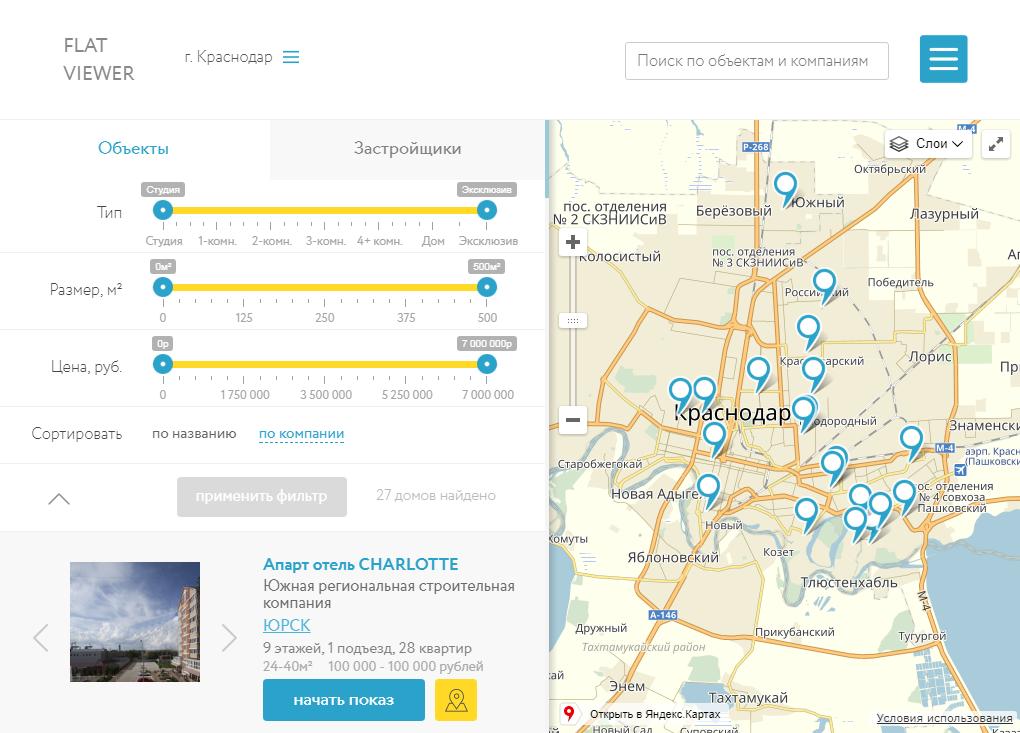 FLAT VIEWER 는 부동산을 판매하고 구매하는 사람들을위한 서비스입니다. 당신은 당신의 미래 주택을 오지 않고, 미래의 정원에서 산책하고, 주차장에 가서, 놀이터로 가서 주거 단지의 영토를 걸어 갈 수 있습니다.