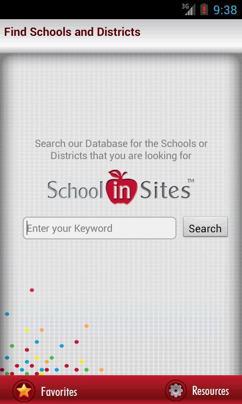 이 앱은 SchoolInsites 서비스에 가입 한 미국에서 공립학교 (및 지구)를 찾을 수있는 간단한 Google 스타일 검색 기능을 제공합니다. 사용자에게는 검색에서 발견 된 지역이나 학교를 즐겨 찾기에 추가 할 수있는 옵션이 제공됩니다. 이 앱은 현재 뉴스, 다가오는 행사, 직원 정보, 학부모 정보, 연락처 정보 및 선택한 각 학군 또는 학교에 대한 웹 사이트 링크를 제시합니다.
