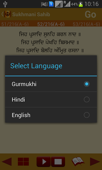 # 선호도의 언어 선택 :- '힌디어의 Sukhmani Sahib '또는 '펀잡의 Sukhmani Sahib '(Gurmukhi) 또는 '영어의 Sukhmani Sahib '