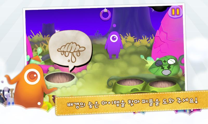 화면 속에 숨은 아이템들을 찾아 퍼플이 앞으로 나아갈 수 있도록 도와주어야 합니다.