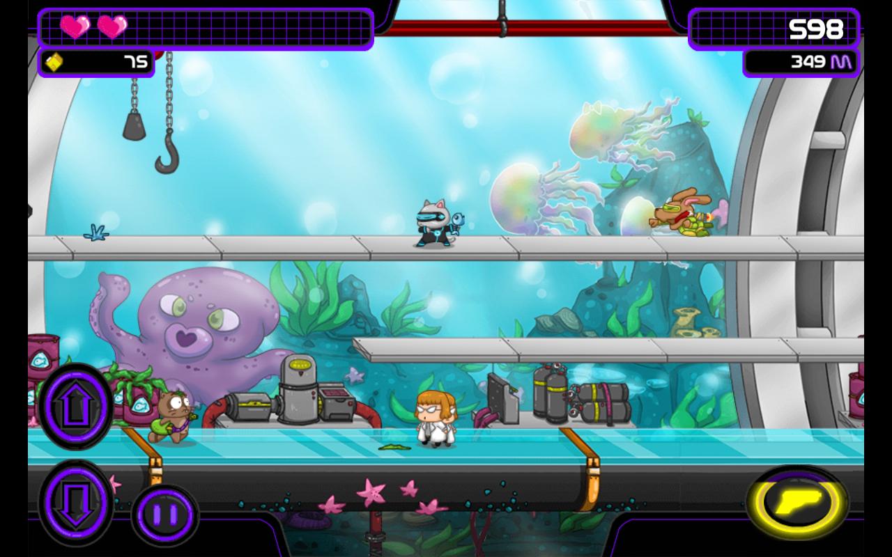 토끼, 너구리 또는 고양이로 플레이하십시오. 지하 실험실에서 탈출하려고합니다. 보안은 모든 비용으로 당신을 막으려 고 노력할 것입니다.