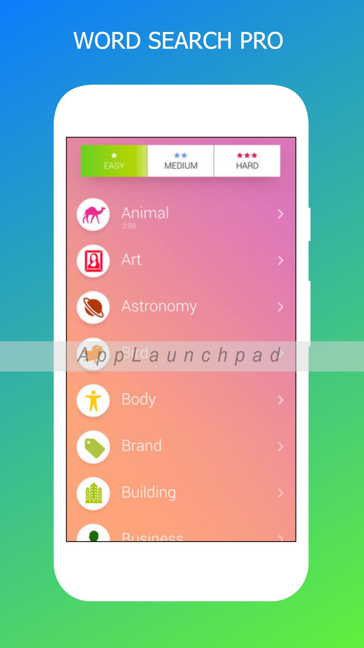 Word Search Pro에는 50 + Catagories와 3 레벨이 있습니다.