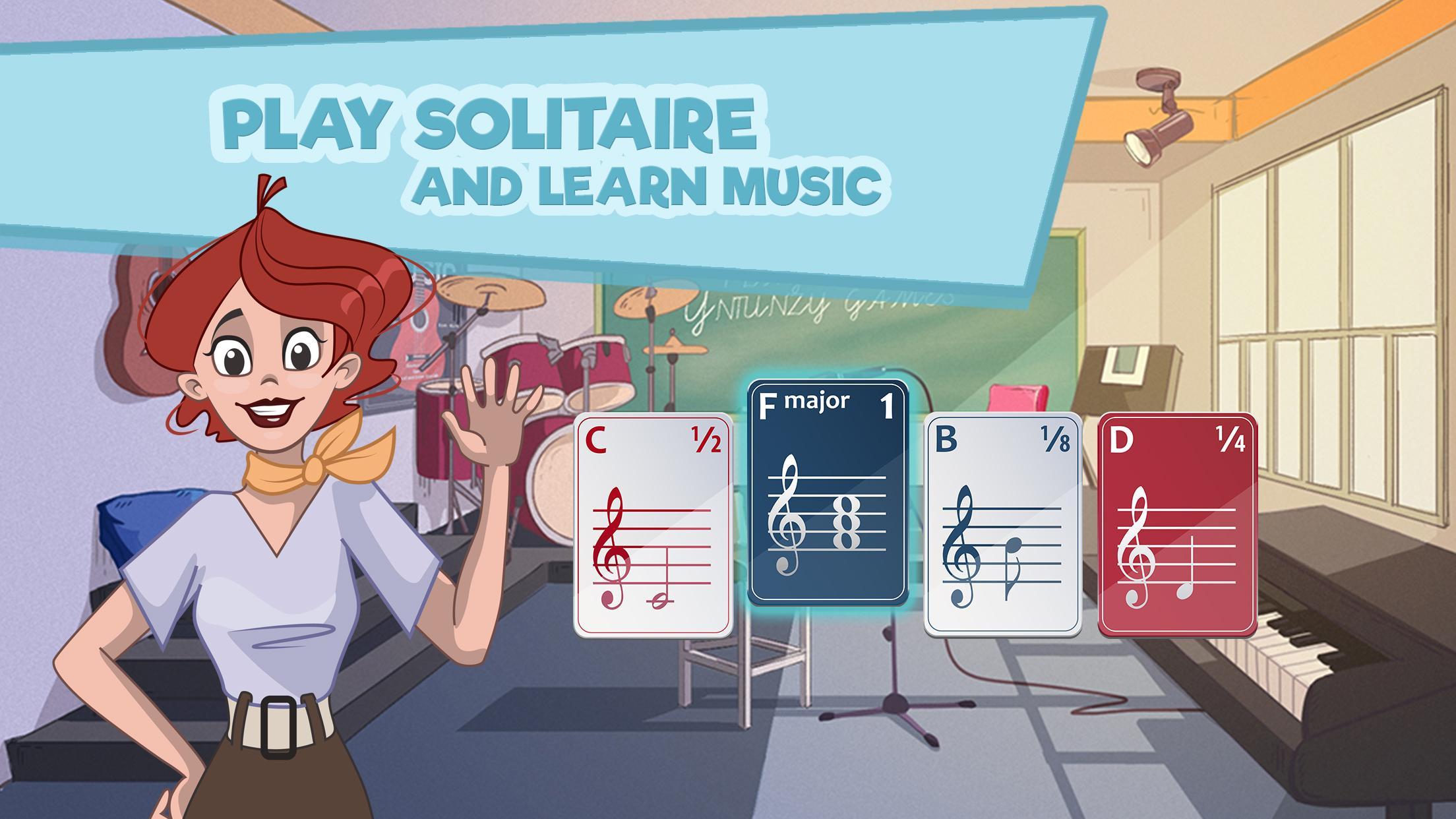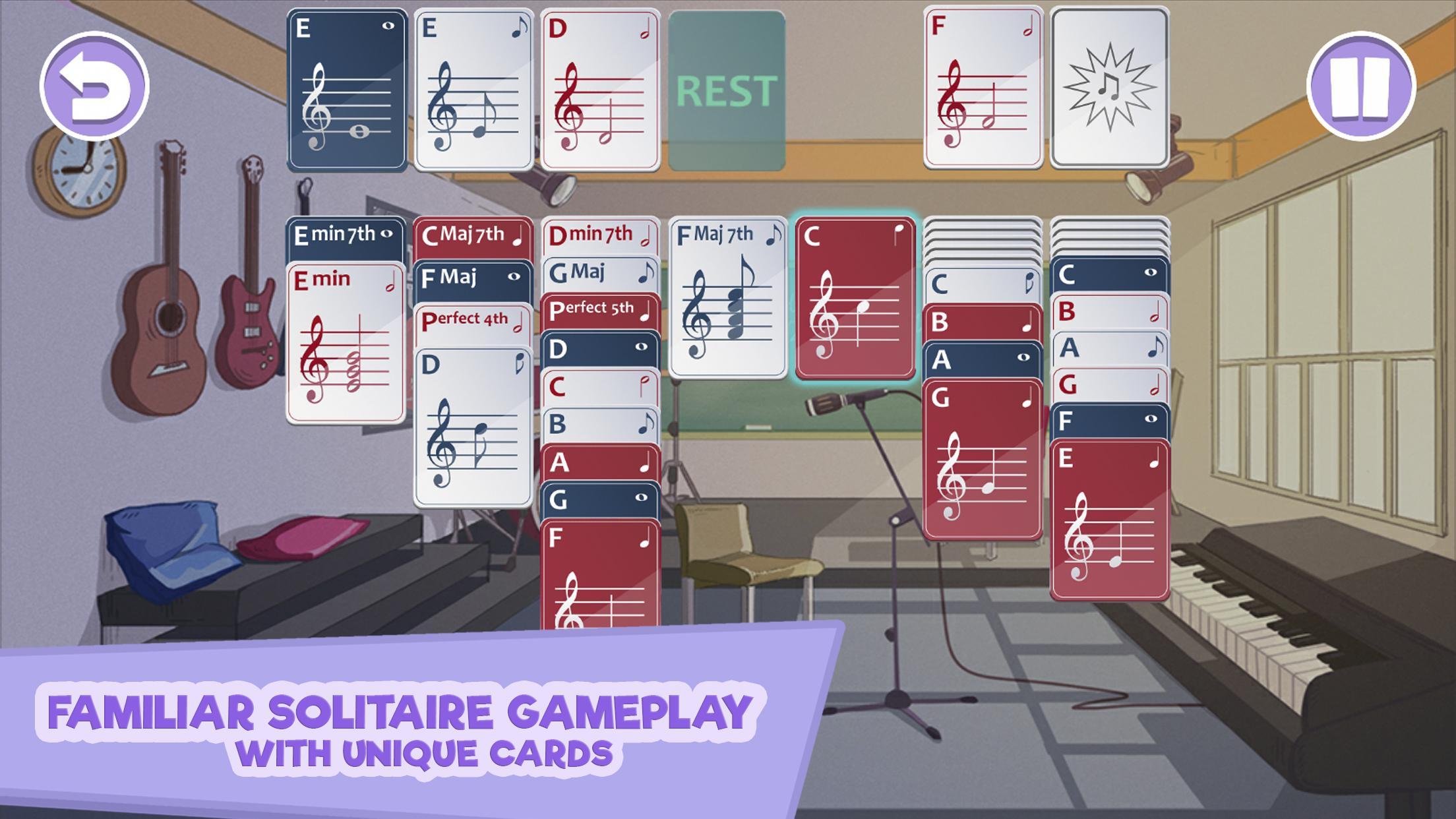 음악 표기법을 사용하여 카드로 고전적인 솔리테어 게임을 연주하십시오 - 연주하는 동안 메모를 들어보십시오. Solitaire는 음악으로 더 재미 있습니다!