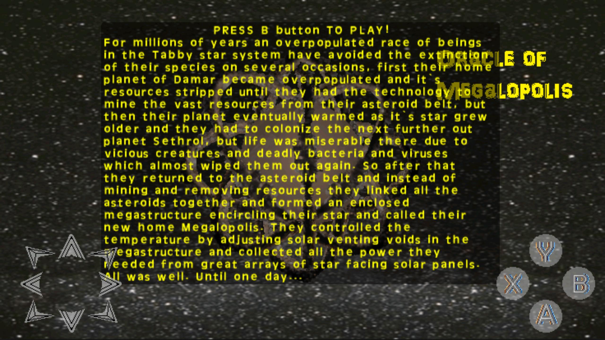 Oracle Of Megalopolis 은 호스트 스타 Tabby 주위에 지어진 거대 길에 살고있는 외계인 종족에 관한 것이며, 벌레 홀의 구체화로 인해 불가피한 죽음입니다.