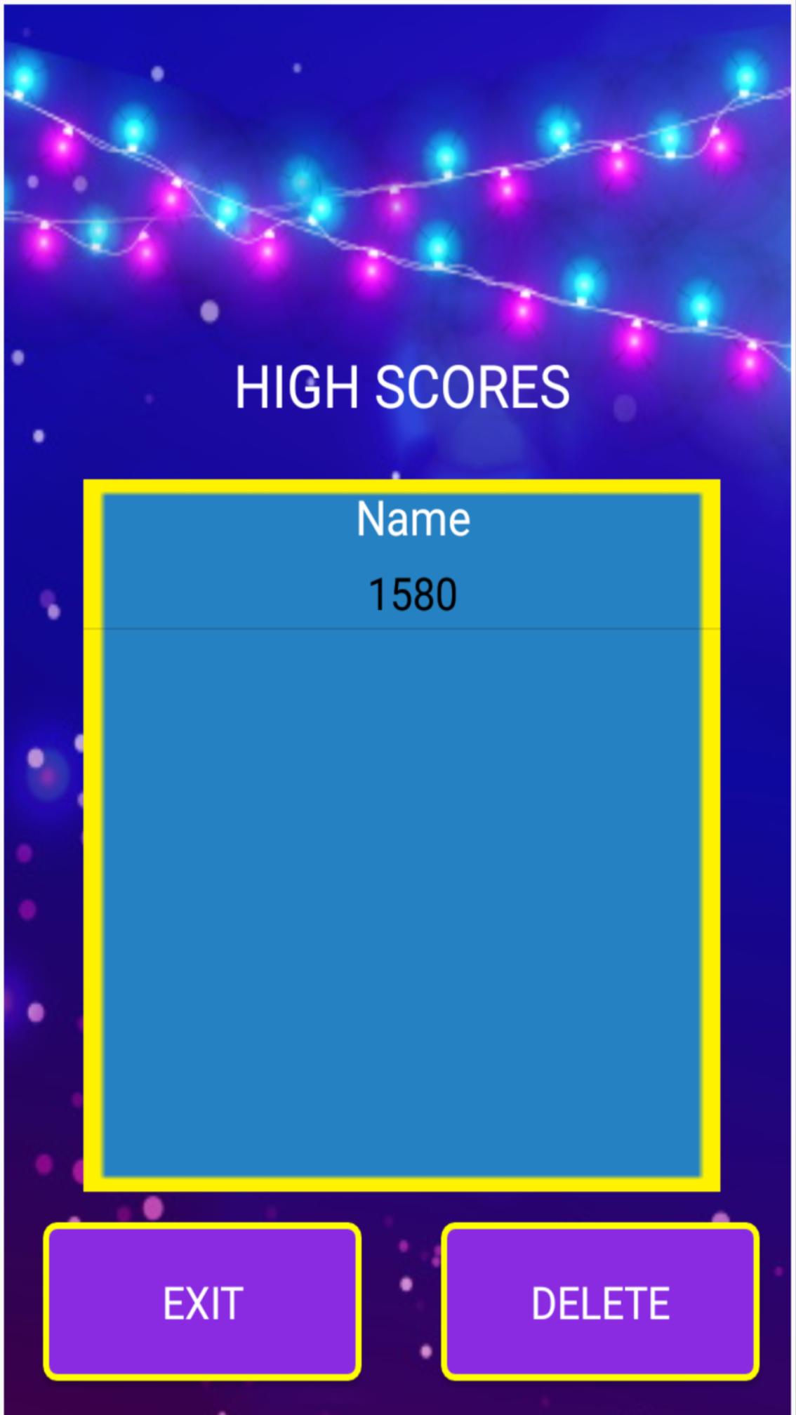 응용 프로그램은 플레이어 이름으로 10 개의 최고 점수를 절약합니다.