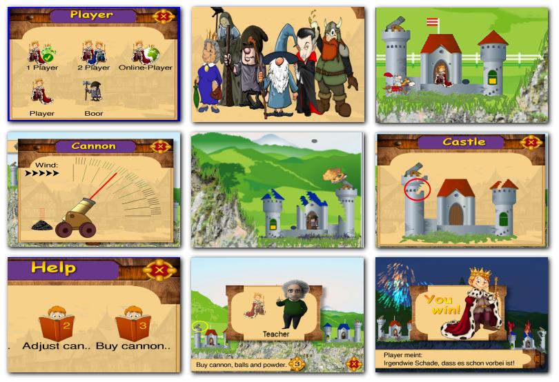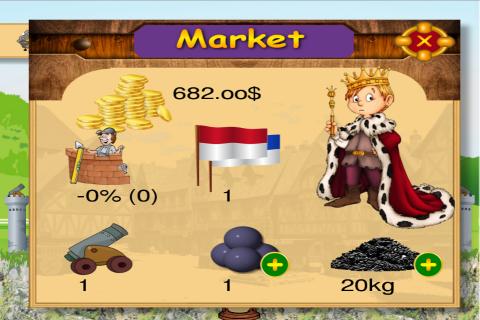그들 사이에 두 성과 언덕. 그것이 당신의 왕과 언덕 반대편에있는 못생긴 전사의 상황입니다. 그의 성을 삭제하지 않으면 당신의 성을 삭제할 것입니다. 대포로 촬영하고 공과 총 가루를 사서 성을 수리하고 살아 남기 위해 노력하십시오.