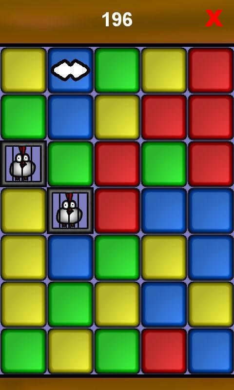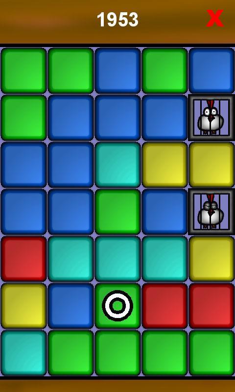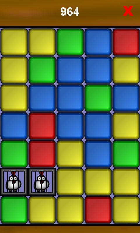 둘 이상의 동일한 컬러 블록을 탭하여 제거하십시오. 닭을 바닥으로 가져 가서 저장하십시오.