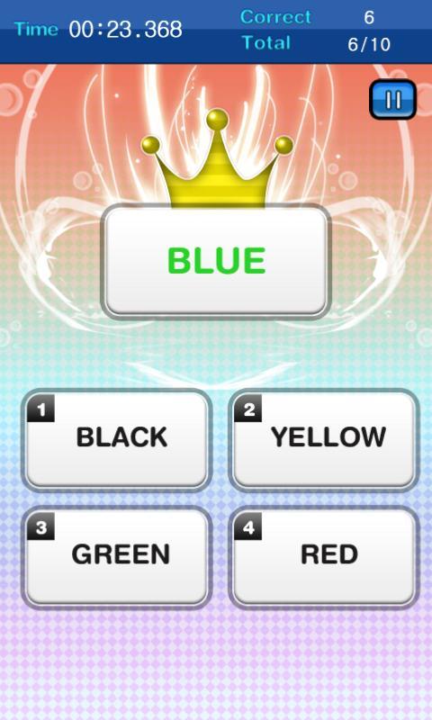 StroopKing Stroop 테스트를 기반으로 한 Brain Game입니다. 이 게임에서는 단어의 색이 아니라 단어의 색을 말해야합니다.
