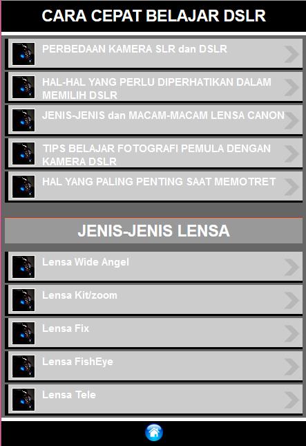 Início aplicativo Leitura de informações Belajar Camera Dslr