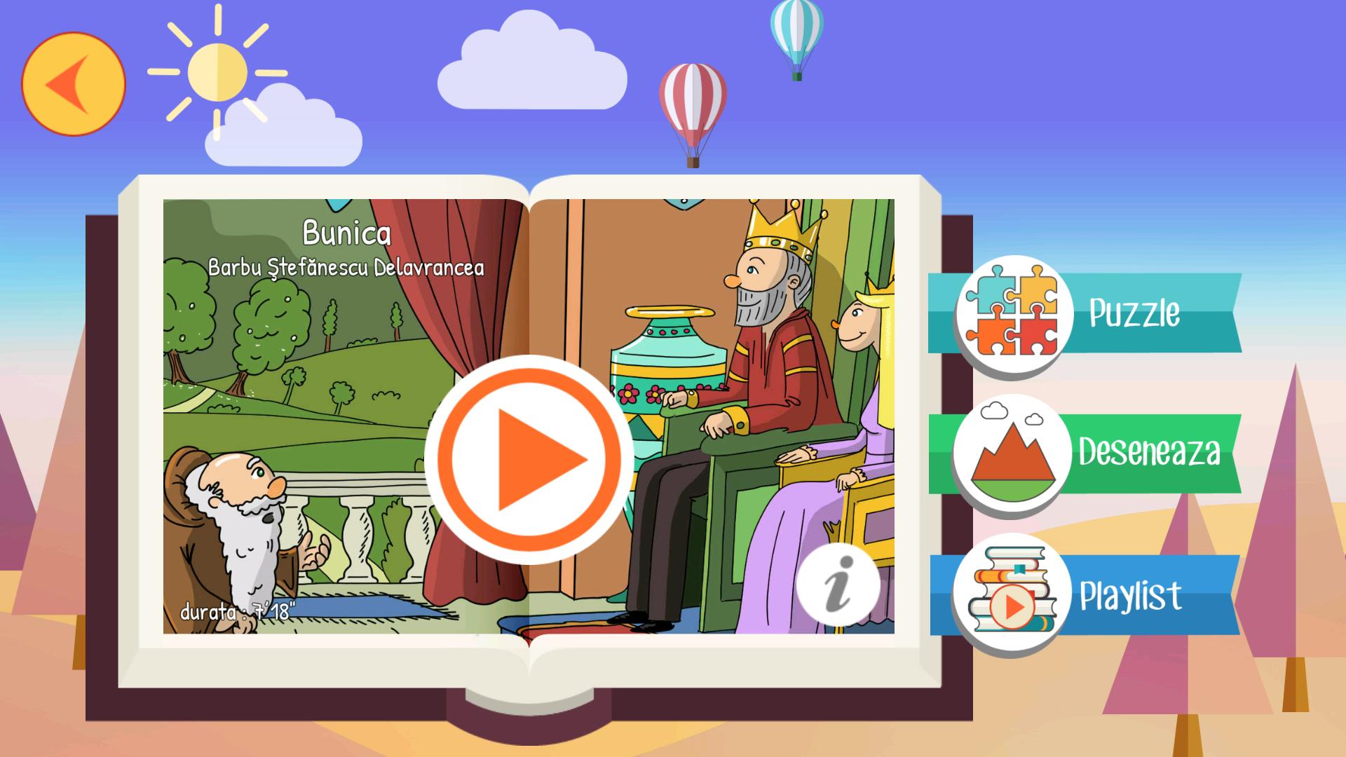 Ajude seu filho a desenvolver seu vocabulário, imaginação e inteligência no mundo de suas Povesti imortais, contos de fadas e lendas através da aplicação de Povesti ilustradas e lidas por profissionais. Descubra os personagens da história juntos e interaja com eles!
