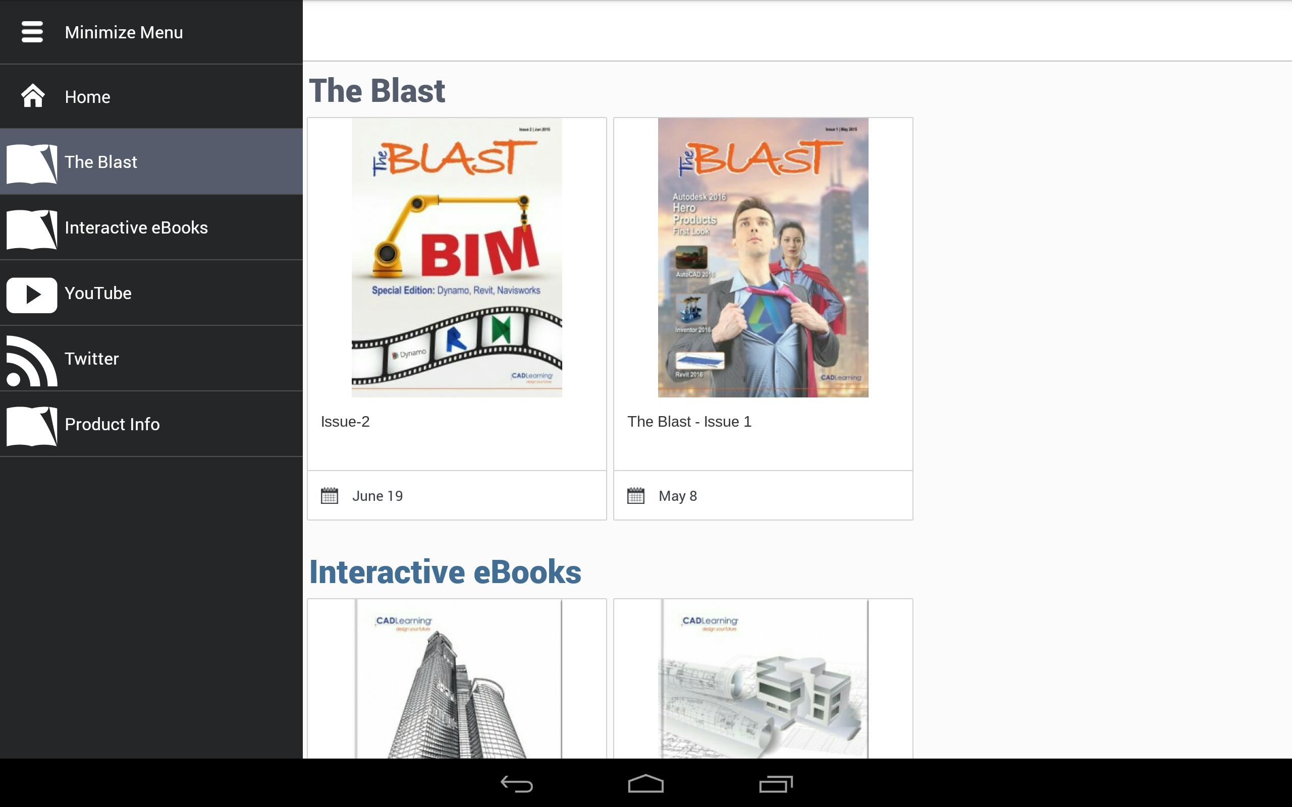 O aplicativo inclui e -books interativos e publicações que contêm conteúdo de vídeo CADLearning e as últimas notícias das contas de mídia social CADLearning . Alguns ebooks exigirão uma assinatura e login CADLearning para visualizar.