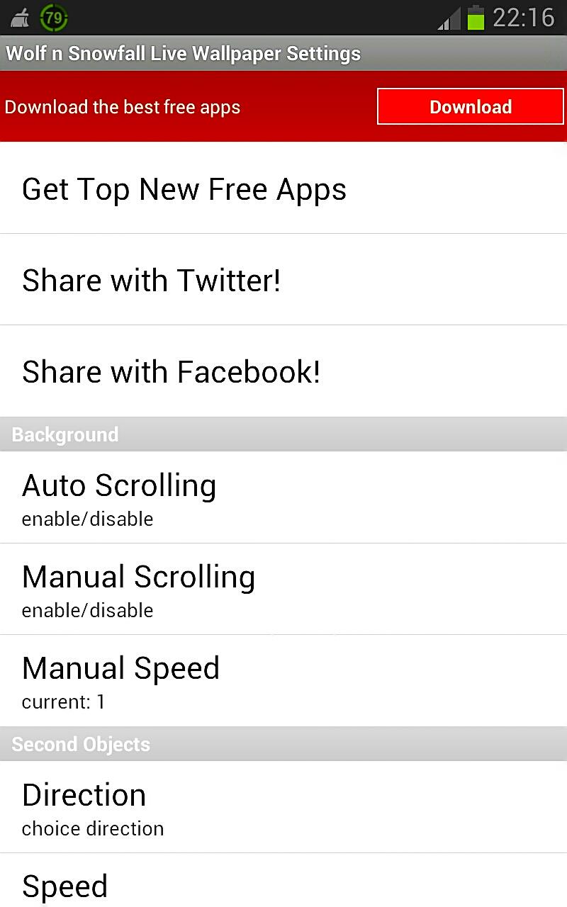 Wolf n Snowfall Live Wallpaper é despretensioso, bem como um protótipo. Para o trabalho de aplicação, muita energia é