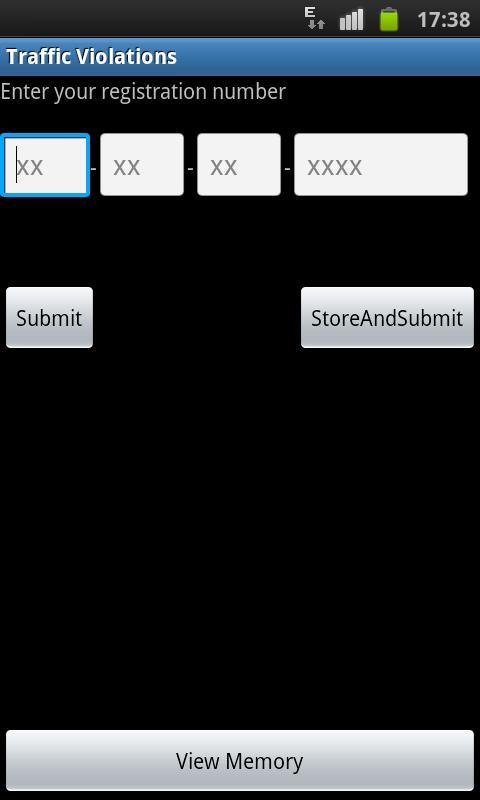 Este aplicativo fornece uma lista de multas que foram registradas no seu veículo. Basta pressionar Enter para entrar no próximo campo de texto.