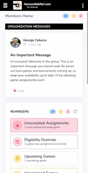 Mantenha -se organizado e eficiente com o aplicativo HorizonWebRef Android, sua porta de entrada para a programação, gerenciamento e tarefas de árbitros e árbitros perfeitos. Obtenha acesso móvel à HorizonWebRef e sua gama de serviços, capacitando você a otimizar suas operações oficiais. Embora este aplicativo abranja a maioria do nosso conjunto de recursos, descubra funções e opções avançadas em laptops ou computadores de mesa.