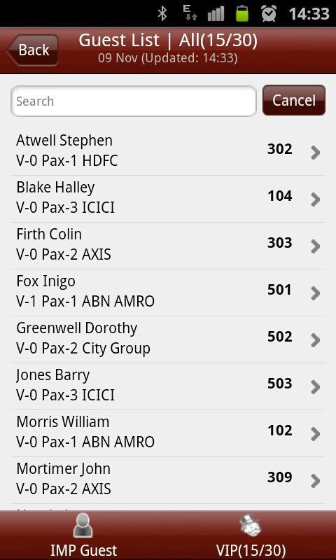 Veja as listas de convidados internamente, pré-chegada e de partida, inclui informações de reserva e perfil