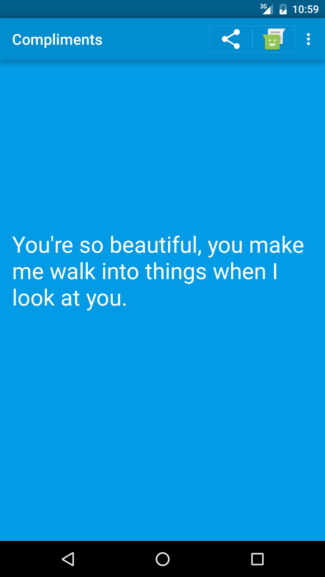 Às vezes, tudo o que queremos é uma pequena risada ou sorriso. Com apenas uma pequena torneira de um aplicativo, podemos fazer isso acontecer. Atualmente, existem mais de 200 Compliments com centenas por vir. Cada vez que você toca na tela, um novo elogio aguarda. Faça o download do aplicativo e lembre -se, você merece o elogio.