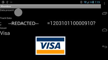 Rhombus usa o Dongle SquareUp Magnetic Stripe Reading Dongle para ler qualquer cartão de faixa magnética do formato padrão. Você pode usá -lo para ver quais informações são sobre seus cartões de crédito, cartões de fidelidade, carteira de motorista e muito mais. Quando um cartão de crédito/débito é digitalizado, ele tenta determinar o emissor. Na captura de tela acima, você pode ver um resultado redigido da digitalização de um cartão de visto expirado. Uma das outras capturas de tela mostra uma varredura de um cartão de diversão do evento principal.
