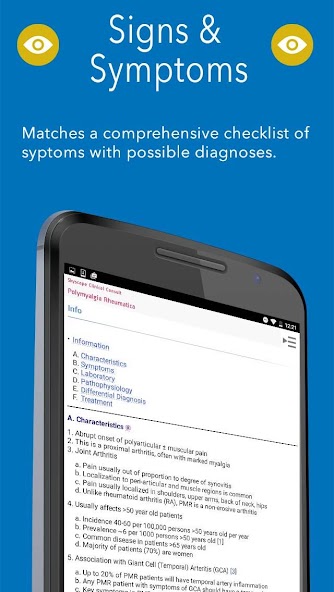 • Consulta clínica Skyscape : Informações clínicas baseadas em evidências sobre centenas de doenças e tópicos relacionados aos sintomas, apresentados em formato de esboço conveniente.