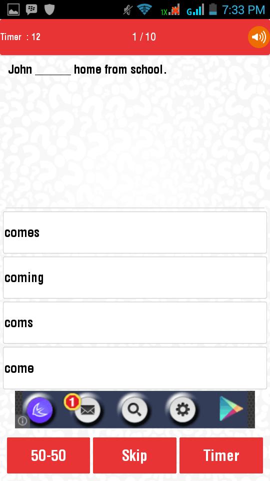 Kuis Grammar em inglês é um teste de jogo que pode melhorar sua capacidade em inglês especial em inglês gramática (gramática). Este Kuis Grammar contém vários tipos de tempos e outros, como: