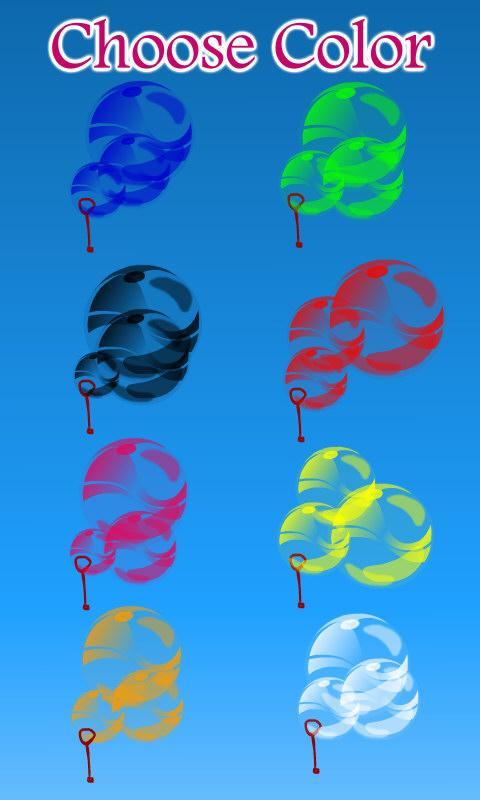 Bubble Blo Free vem com apenas uma cor de bolhas, mas se você atualizar para a bolha normal, ele contém oito cores de bolhas, incluindo: