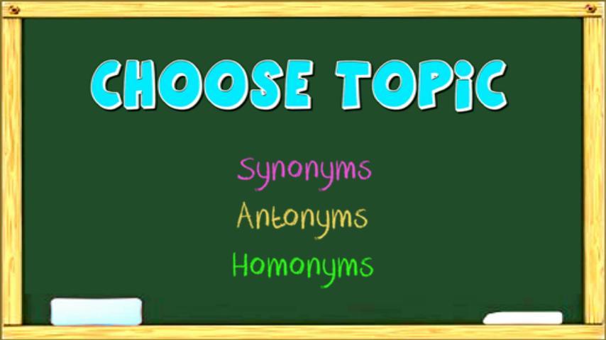 É um aprendizado baseado em jogos para as crianças praticarem seus conhecimentos sobre sinônimos, antônimos e homônimos.