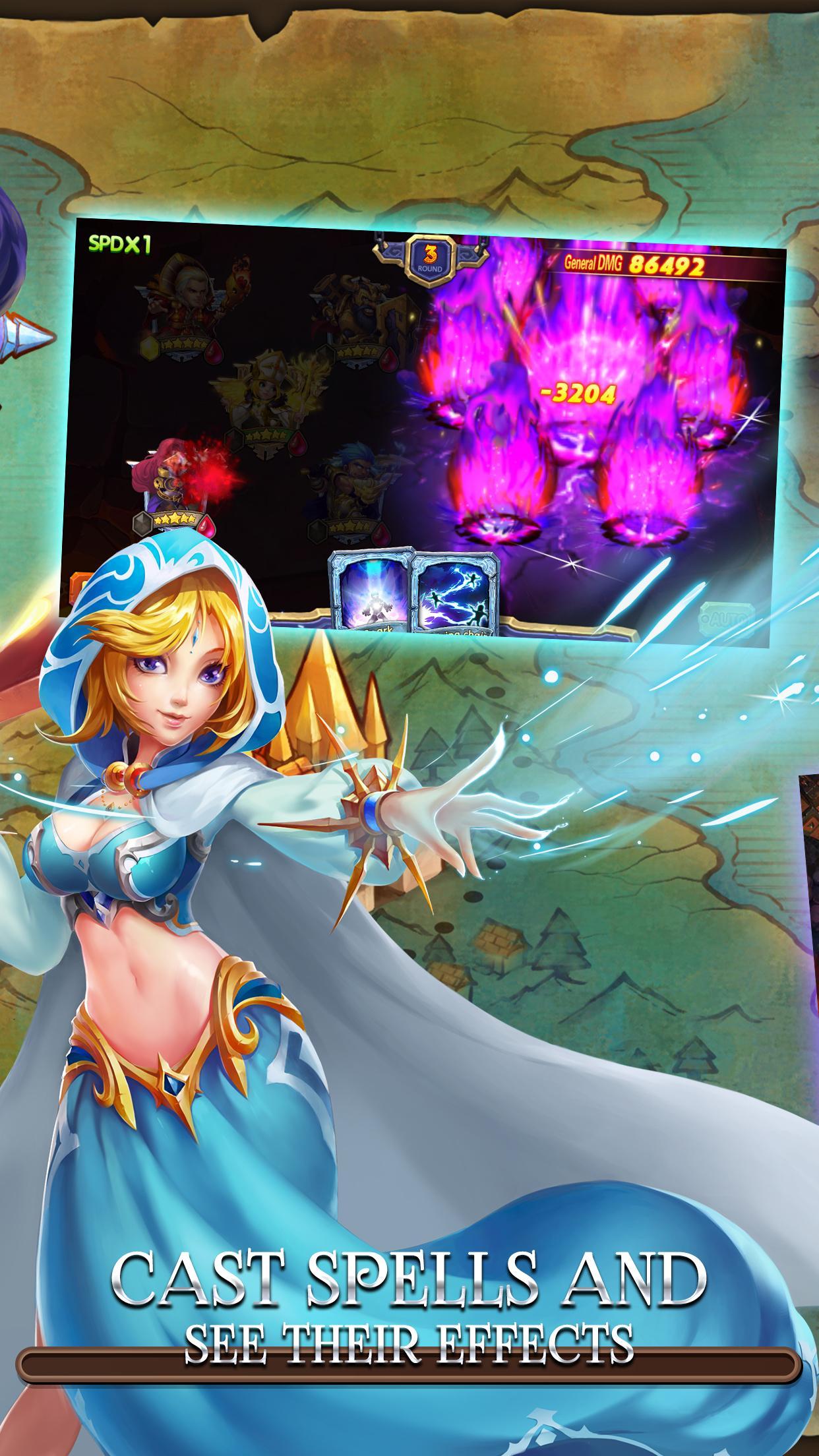 Você pode treinar e comandar uma equipe de heróis em combates em ritmo acelerado enquanto experimenta a emoção de lançar feitiços diferentes com cartões mágicos. Junte -se a nós e participe de intensas batalhas 1V1!