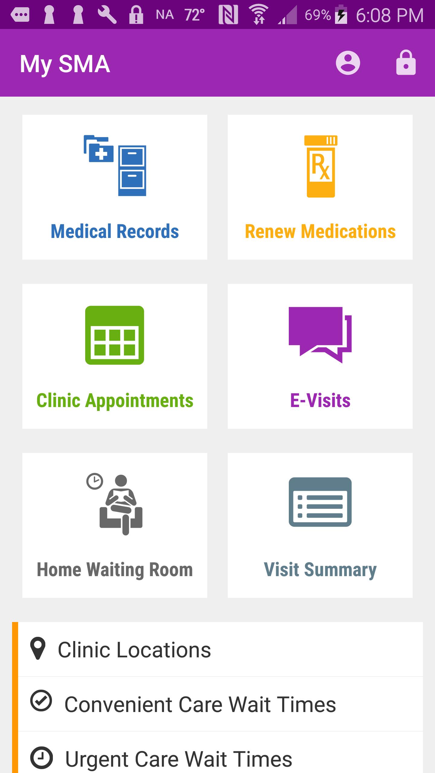 Приложение также предлагает вам возможность получить доступ к медицинской помощи в учреждениях SMA Urgent Care, включая некоторые новые функции. С приложением вы можете: