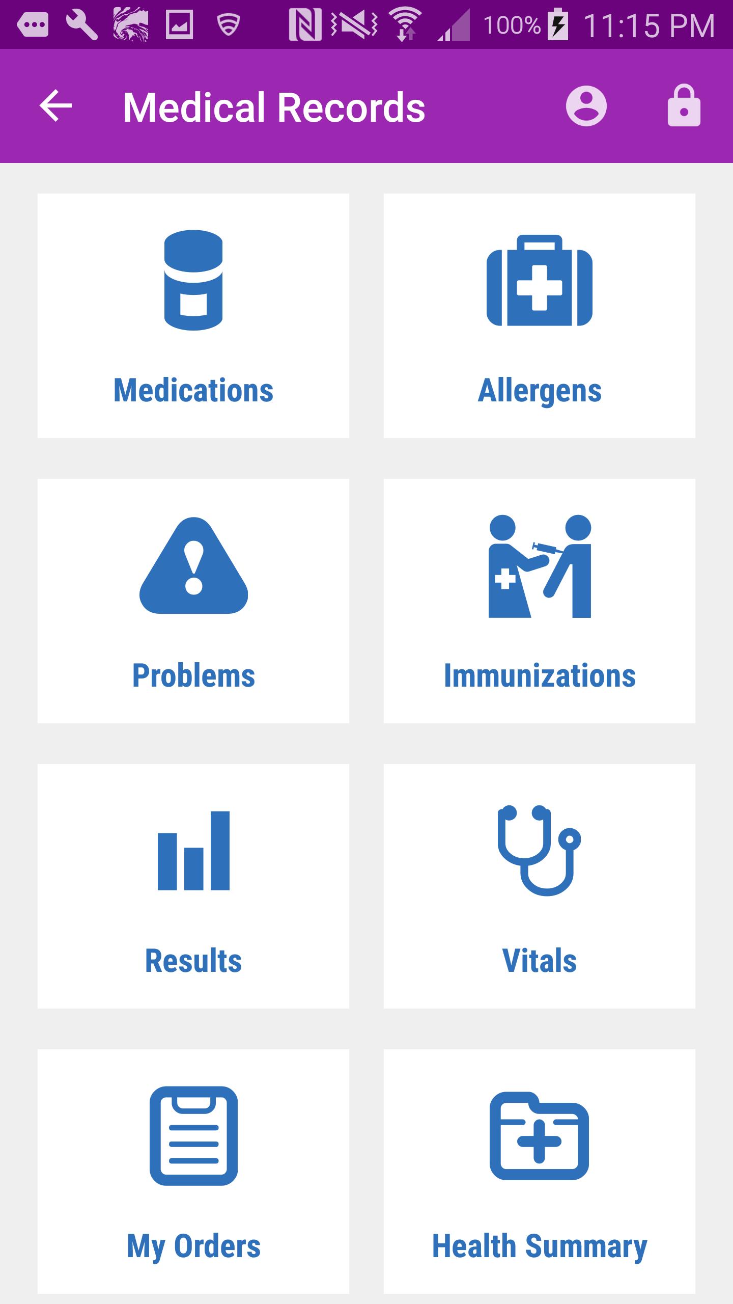 Доступ к вашим личным медицинским записям, включая иммунизацию, аллергены, лекарства и статистику жизненно важных