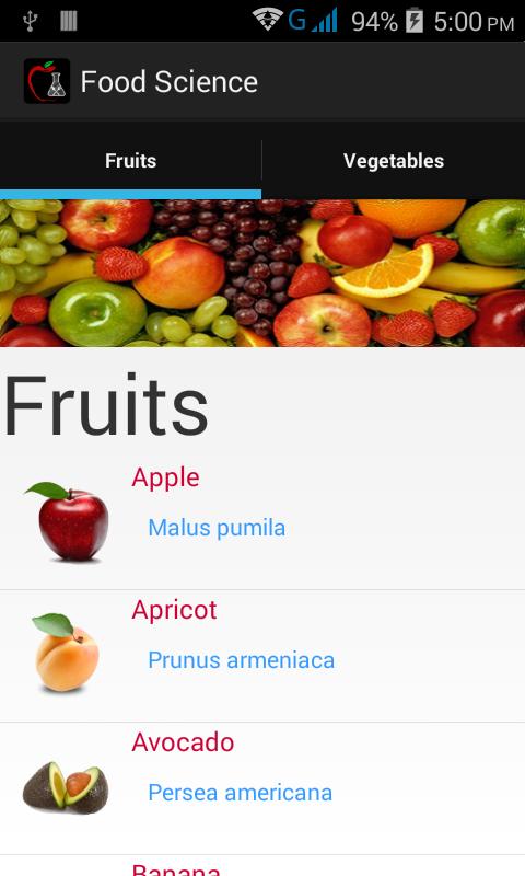 Food Science предоставляет вам информацию о фруктах и овощах. Он предоставляет вам информацию, такую как его факты питания, сорта и польза для здоровья.