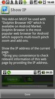 Dolphin Show IP является эксклюзивным дополнением для браузера Dolphin. Для получения дополнительных дополнений посетите: http://bit.ly/androiddd-onlist