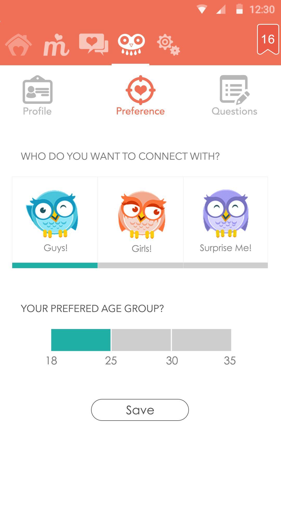 - Заполните свой профиль и выберите свой предпочтительный пол и возраст, чтобы встретиться.