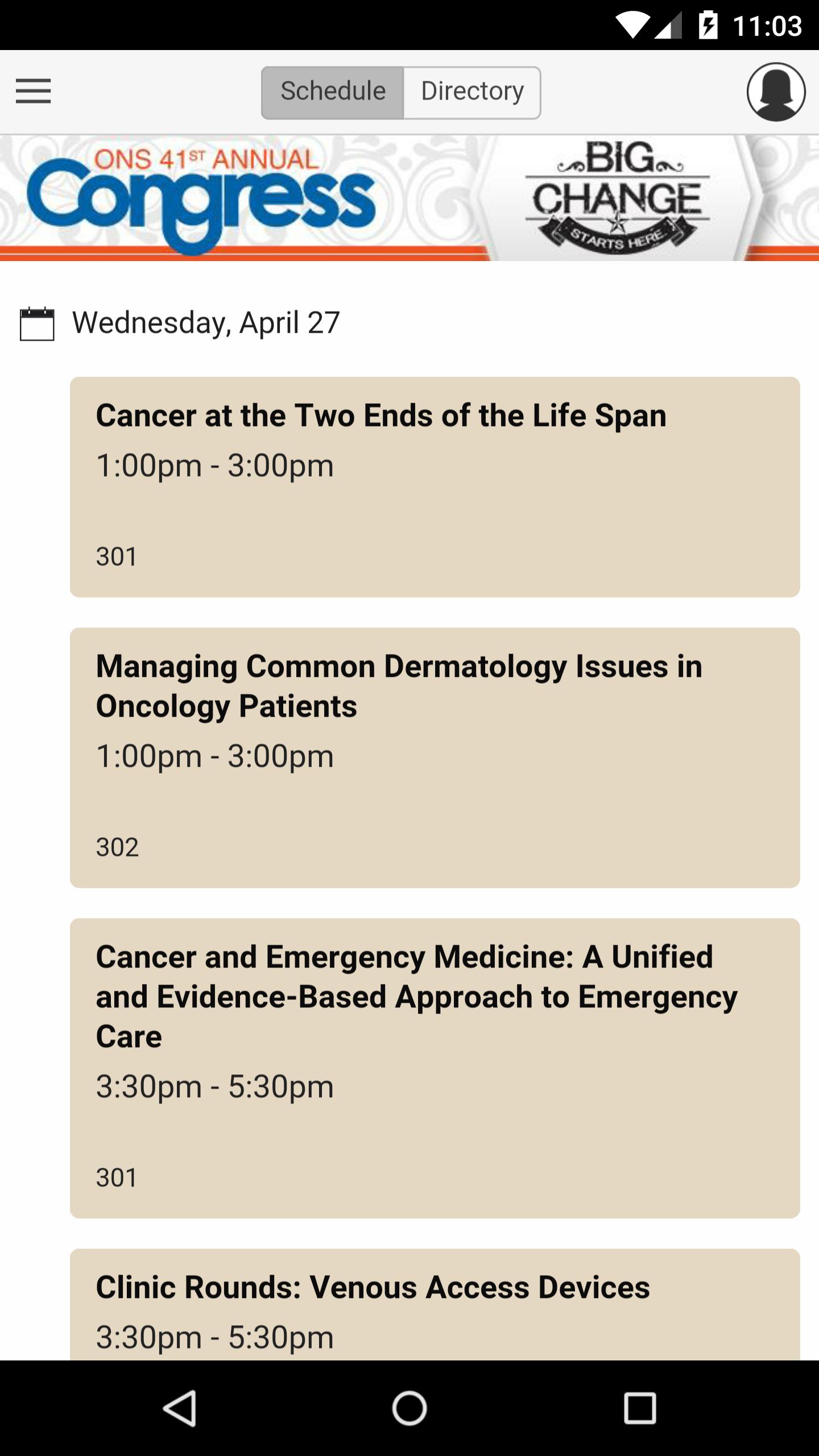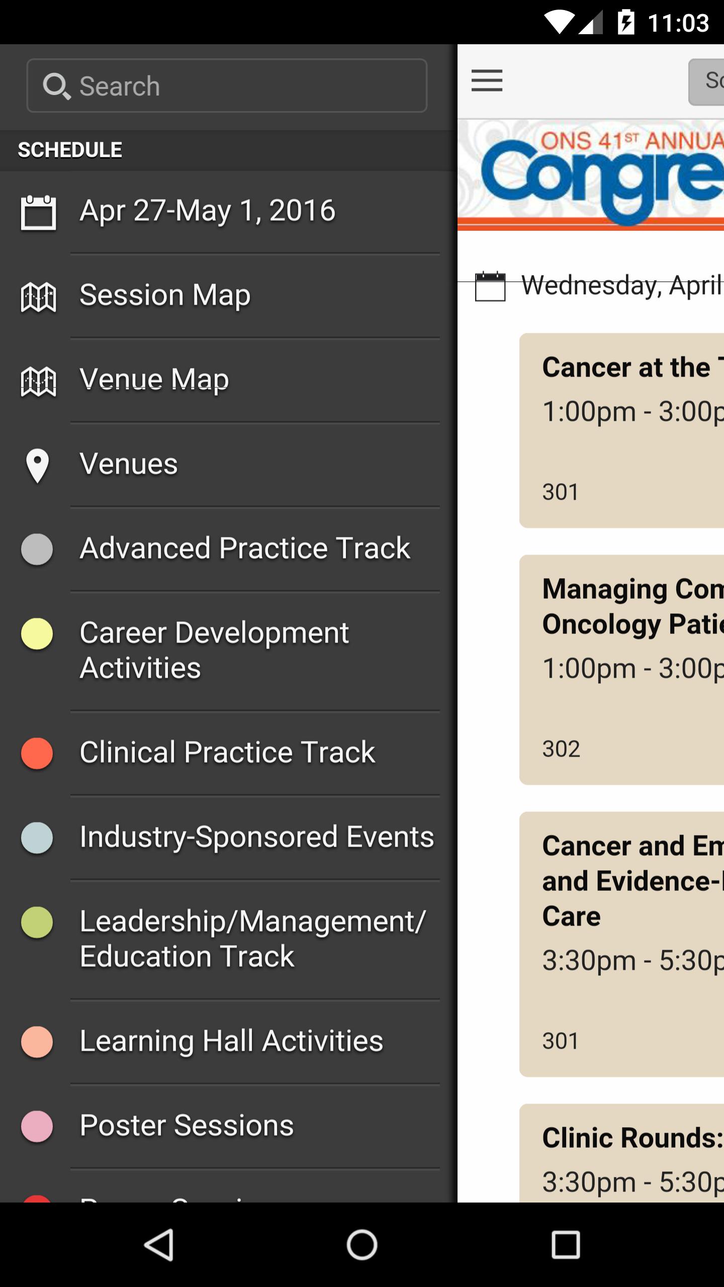 Просмотрите весь график для 41 -й ежегодного Конгресса ONS. Вы можете отфильтровать по цветовым типам, местам или искать то, что вам нужно. Получите полную информацию о каждом событии, не выдвинувшись на открытие руководства по событиям.