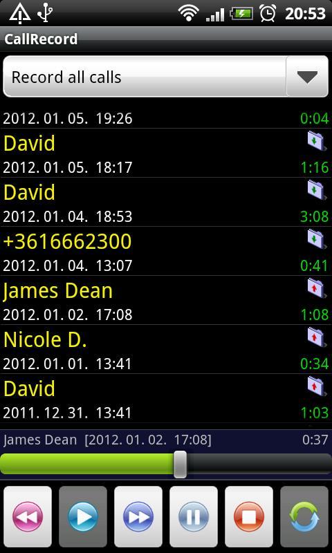 ПРЕДУПРЕЖДЕНИЕ: Некоторые производители устройств отключили входящий голос DE. Сначала попробуйте демо -приложение, пожалуйста. Если приложение для записи вызова не записывается, перейдите в меню «Настройки» (кнопка нажмите на меню) и нажмите «Входящий голос ограничен ...» и попробуйте еще раз