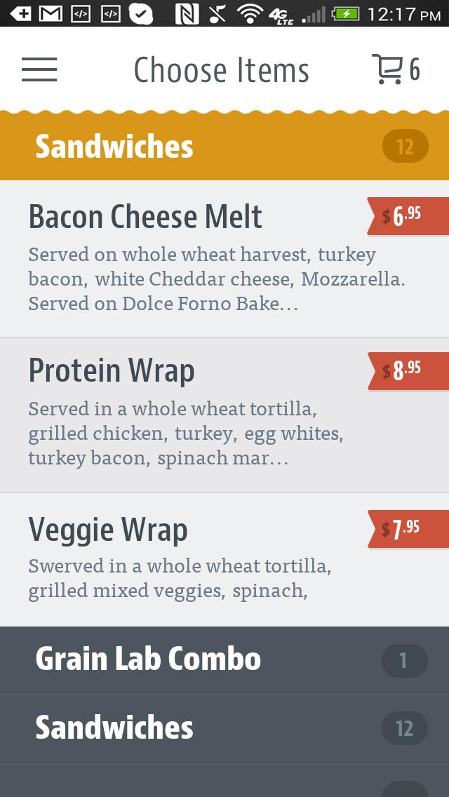 С приложением Grain Lab заказать вашу любимую еду на работу никогда не было проще. Просто откройте приложение, просмотрите меню, выберите свои элементы и вуаля! Специальные функции включают в себя: информация о ресторане, полный доступ к меню, заказ, предстоящие, специальные инструкции, чаевые и сохранение информации о вашей учетной записи, а также Android Pay для легкой оформления заказа. Скачать. Заказ. Есть. Повторить.