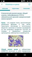 Приложение содержит справочник, включающий более чем 1700 видов медицинских исследований: анализы крови, анализы мочи, ПЦР-диагностику, тесты на инфекции, гормоны, ВИЧ, гепатиты, хламидии, генетические, иммунологические исследования. В справочнике вы найдете подробное описание лабораторных тестов и показания к ним, референсные значения результатов для разных возраста, пола и физического состояния, а также актуальные цены на все услуги. В приложении работает поиск по названию исследования и группам анализов, доступных в выбранном медицинском офисе.