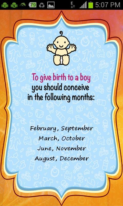 Приложение Gender Genesis помогает вам предсказать пол вашего ребенка в зависимости от возраста матери в концепции и месяце зачатия. Это поможет вам спланировать пол вашего ребенка, вступив в год, когда вы планируете зачать и дату рождения матери.