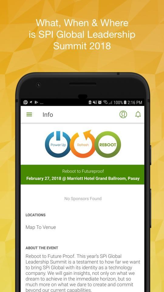 SPI Global App-ваше сопутствующее приложение SPI Global Leadership Summit: перезагрузитесь в будущее. Он предоставляет всю необходимую информацию для конференции 27 февраля 2018 года.