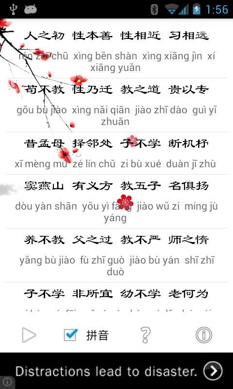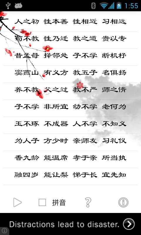 Three Character Primer - один из китайских классических текстов. Благодаря короткому и простому тексту, расположенному в трех символе, дети изучали много общих персонажей, грамматических структур, элементов истории Китая и основой конфуцианской морали.