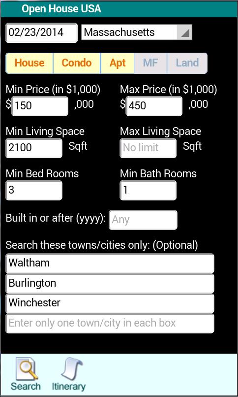 Недвижимость открытых дверей США позволяет поискать в MLS Real Estate Information во всех США (50 штатов и округ Колумбия). Поиск недвижимости (дома для одиночной семьи, квартиры, квартиры, таунхаусы, многосемейные дома, земля и т. Д.) Для продажи с открытым домом в любые даты в ближайшие две недели. Укажите один или комбинацию типов имущественных, включая отдельный дом, квартиру (кондоминиум), квартиру, многосемейную или землю. Выберите любое состояние, а затем, необязательно, выберите один или несколько городов/городов, которые будут искать только. Вы можете также сузить выбор, указав минимальные и максимальные цены, минимальные и максимальные жилые помещения, количество спален и ванных комнат, а также максимальный возраст (самый ранний построенный год) дома.